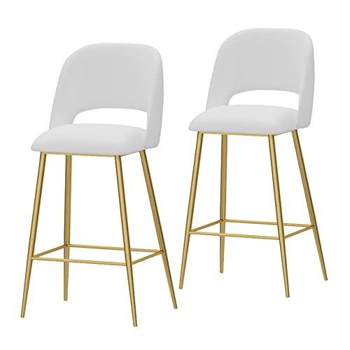 Tabouret de Bar de 2, tabourets de comptoir Tabouret en Velours, tabourets d'îlot de Cuisine arrière doré, Hauteur de siè 65/75 cm (Blanc, 65 cm)