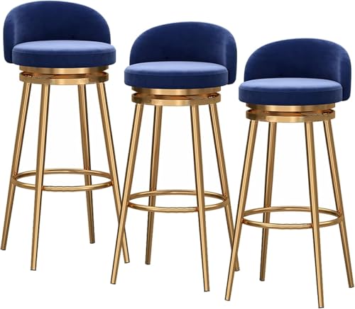 XJBTBA Tabouret de Bar pivotant à Hauteur de comptoir avec Dossier Creux, siège rembourré en Velours, Pieds en métal doré, Haut, élégant (Bleu, Hauteur 65 cm)