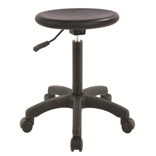 Chaise Tabouret Roulante avec Support Dorsal Hauteur Réglable 16 « -24 », Chaise De Salon pour Coiffeur Base Ronde Rembourrage D’Assise épais, Black, One Size