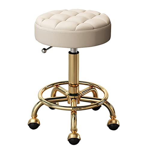 MEYEBP Tabouret Roulant Tabouret Pivotant, Tabouret De Coiffeur Réglable en Hauteur sur Roues, Tabouret Hydraulique Robuste en Métal avec Tige De Chaise Dorée pour Cuisine, Salon