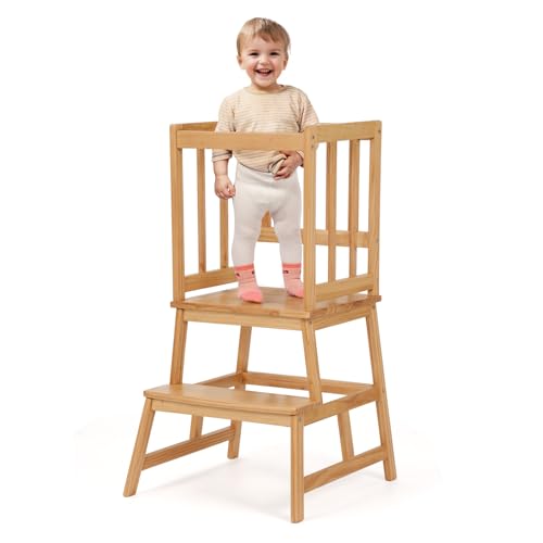COSYLAND Tour d Observation Montessori en Bois pour Enfants 1-3 Ans, Chaise Apprentissage Sécurisée et Stable, Tabouret Évolutif Enfant Cuisine et Salle de Bain, Learning Tower - Naturel