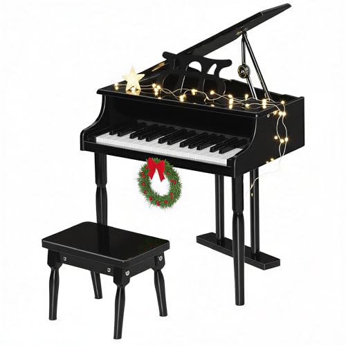 HOMCOM Piano à Queue Enfant en Bois Piano Enfant Clavier de Piano 30 Touches - Tabouret et pupitre inlus - Instrument de Musique - MDF Noir