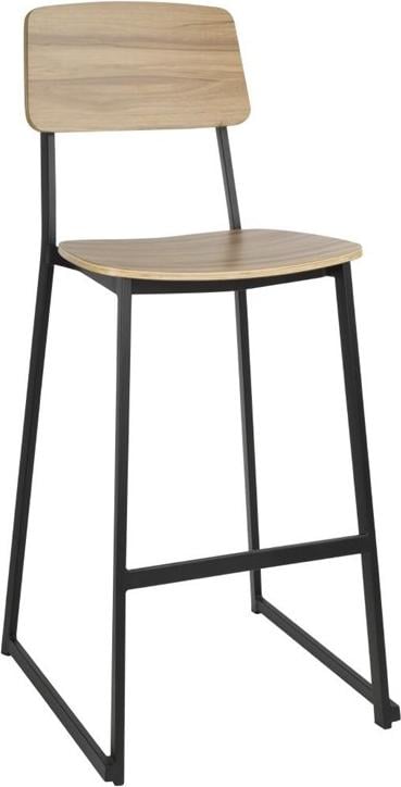 Kosmi - Tabouret de bar en métal noir mat style industriel avec dossier haut et assise en bois clair - Hauteur 66cm