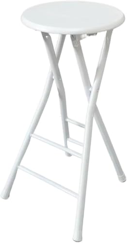 XJBTBA Tabouret de Bar Pliant Rond Portable Blanc avec Dossier pour Petit-déjeuner Haut pour Adultes, Cuisine, Hauteur d'assise (Blanc, Hauteur d'assise 75 cm)