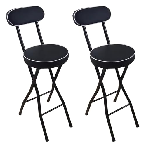 XJBTBA Tabouret de Bar Pliant Rond Portable Blanc avec Dossier Haut Petit déjeuner pour Adultes Cuisines Hauteur d'assise (Noir, Hauteur d'assise 75 cm)
