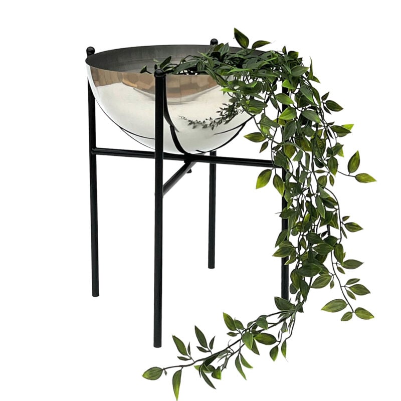 Dandibo - Tabouret à fleurs Métal avec pot Noir Argent 18 cm Porte-fleurs 96091 s Colonne à fleurs Moderne Porte-plantes Tabouret à plantes