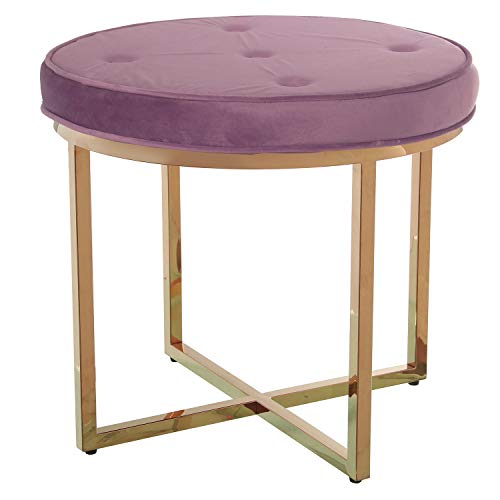 DRW Tabouret en métal avec Assise en Velours doré Mat et Violet 50 x 46 cm