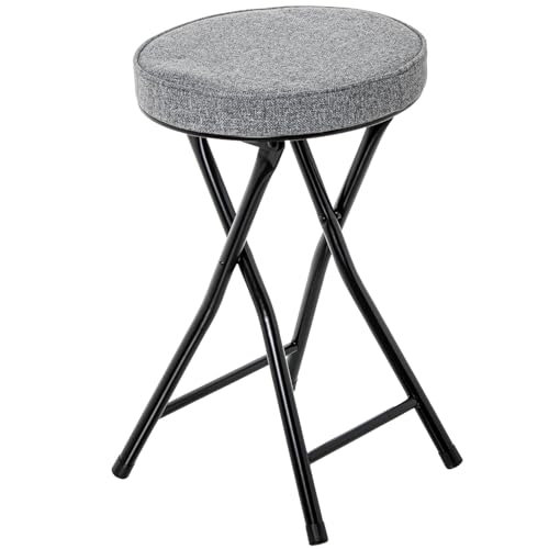 DRW Tabouret Pliable en métal et Tissu Noir et Gris 30 x 30 x 49 cm