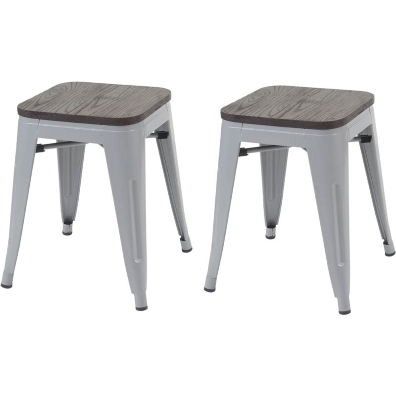 2x tabouret HHG 397 avec siège en bois, tabouret en métal, design industriel, empilable, gris