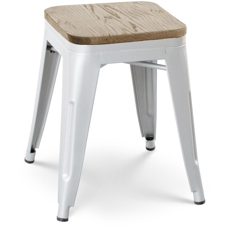 Kosmi - Tabouret en métal blanc mat style industriel et assise en bois clair - Sans dossier - Hauteur 46 cm