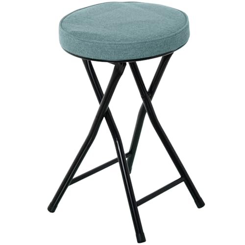 DRW Tabouret Pliable en métal et Tissu, Noir et Vert, 30 x 30 x 49 cm