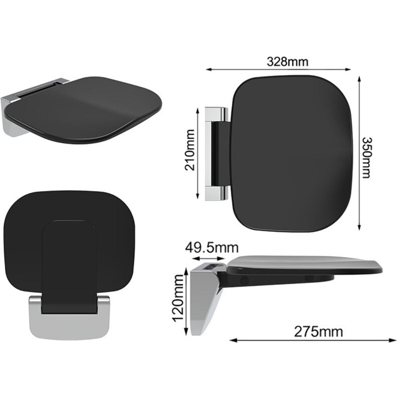 Heuffe Siège de Douche Rabattable Mural Pied Fixe - 200kg Portée Max, Tabouret Pliable Adulte/PMR, Surface Anti-Dérapant, ABS Noir pour Salle de Bain
