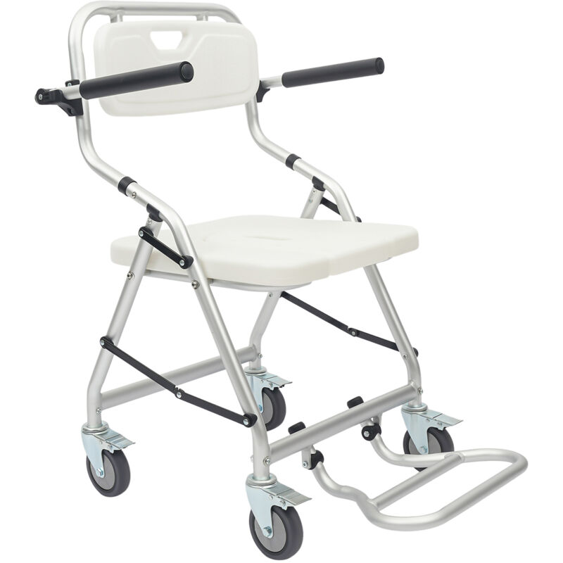Chaise de douche à roulettes pour personnes âgées 150 kg, pliable, multifonctionnelle, avec freins et accoudoirs, tabouret de douche pour personnes