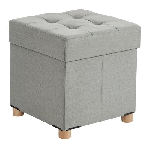 SONGMICS Tabouret de Rangement, Petit Pouf Pliable, 38 x 38 x 40 cm, Repose-Pieds Cubique avec Rangement, Charge jusqu'à 300 kg, pour Salon, Chambre, Dortoir, Gris Tourterelle LSF14GYX