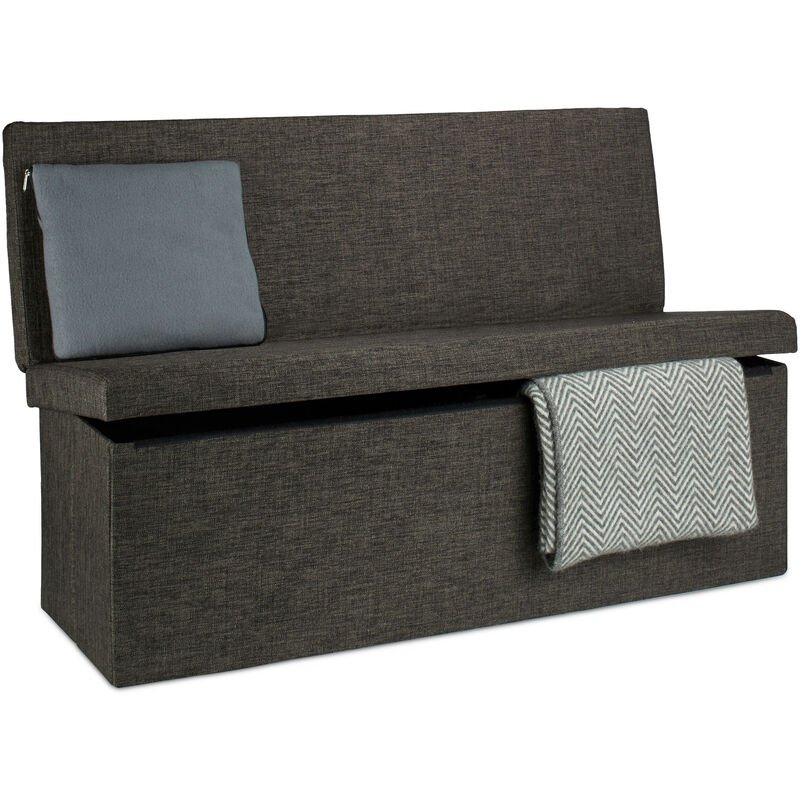 Tabouret de rangement pliant en lin, avec dossier appui-dos, h x l x p : 73 x 114 x 38 cm, gris - Relaxdays