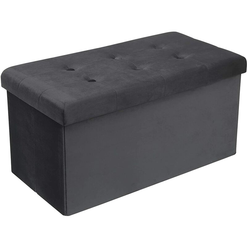 Tabouret Banc de Rangement en Velours, Pouf Pliable Cube Coffre de Rangement 76x37, 5x38cm, Gris - Woltu