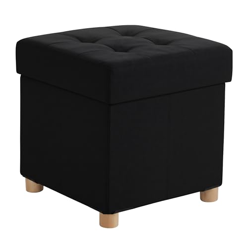 SONGMICS Tabouret de Rangement, Petit Pouf Pliable, 38 x 38 x 40 cm, Repose-Pieds Cubique avec Rangement, Charge jusqu'à 300 kg, pour Salon, Chambre, Dortoir, Noir d'encre LSF014B11