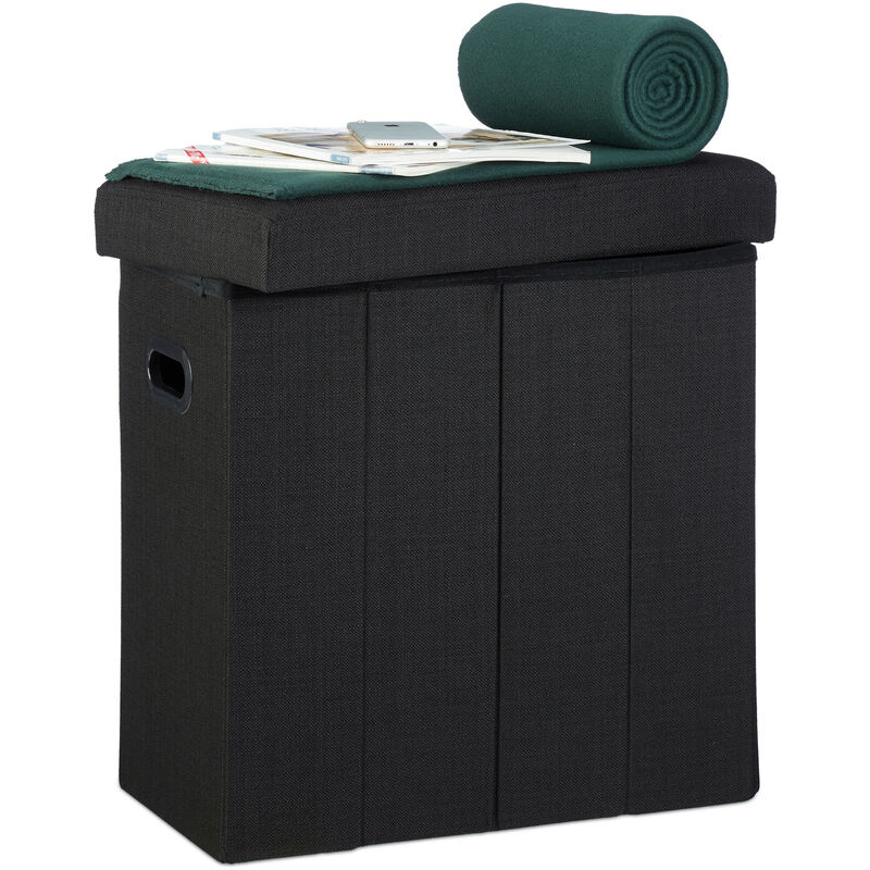 Relaxdays - Tabouret de rangement pliable HxlxP: 49,5 x 46 x 25,5 cm, avec rangement en lin, polyester, mdf, noir