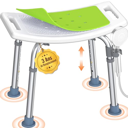 Luckfaith Tabouret de Douche Réglable 6 Niveaux – Tabouret de Bain Léger avec Assise en U, Siège de Douche Antidérapant avec Support Pommeau, pour Seniors, Personnes Handicapées et Femmes Enceintes