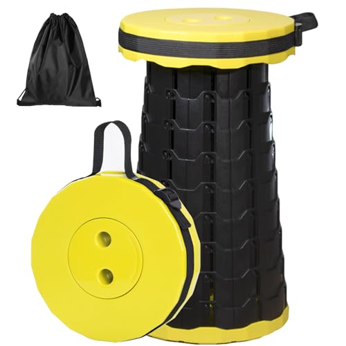 GeeRic Tabouret de Camping Portable, Chaise Pliante rétractable Tabouret de Camping Pliable télescopique Pliable pour la pêche en Plein air randonnée Jardinage BBQ Jaune