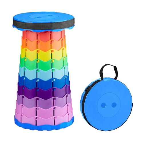 Relaxdays Tabouret télescopique, HLP : 44,5x25x25, réglable, avec bandoulière, siège rétractable, coloré