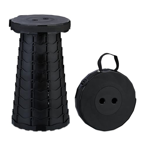 Relaxdays Tabouret télescopique, HLP : 44,5x25x25, réglable, avec bandoulière, siège rétractable, noir