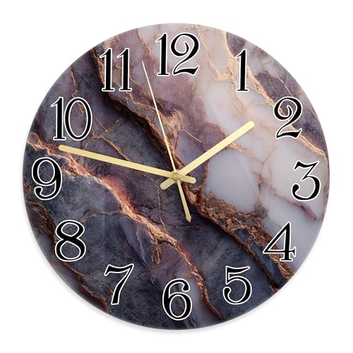 Horloge murale en marbre, élégante et moderne avec chiffres dorés N/A Violet Sans tic-tac pour garage, salle de jeux, décoration extérieure 29 x 29 cm