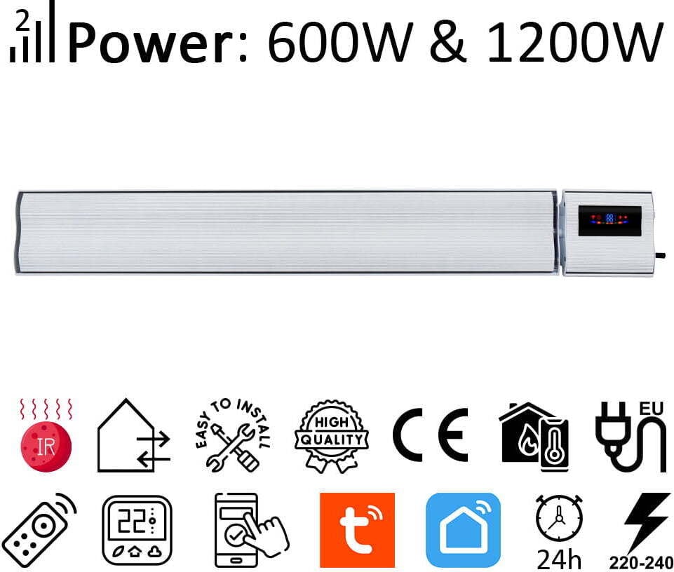 ElectricSun 1200W et 600W blanc radiateurs électriques infrarouge avec thermostat, montage mural ou au plafond 94x15cm, avec contrôle WiFi Smart Life App