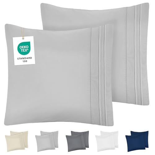 Taie Oreiller 60x60 Coton Renforcé (Set de 2) - Gris Clair - Tissage serré de 57 Fils/cm² - Taie Oreiller 60 x 60 cm- Certifié Oeko Tex