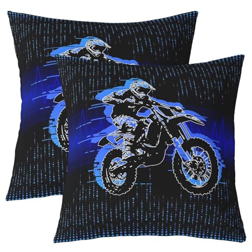 Homewish Housse Coussin Lot de 2 Motocycliste Housse de Coussin Bleu Vélo de Saleté Taie Oreiller 60x60 Enfants Adolescents Adultes Motocross Taie d'oreiller Sports Extrêmes Chambre Couch Décor