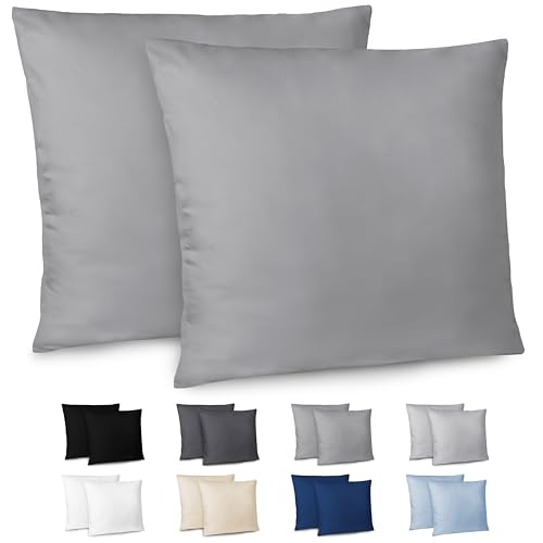 Blumtal Taie Oreiller 60x60 Lot de 2 - Housse de Coussin Microfibre - Taies d'oreillers avec Fermeture enveloppe, certifiée Oeko-Tex, Extra Douce et Lavable - Gris Clair de Lune