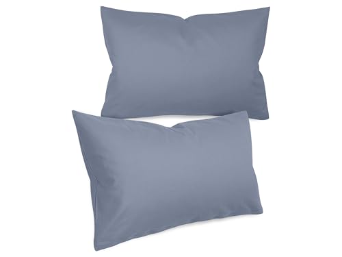 Npluseins Taie Oreiller 40x60 Unie - Lot de 2 Taies d'oreillers 40x60, 100% Coton Doux, Respirantes et Confortables, Design Discret 1154.1498, Bleu Jeans
