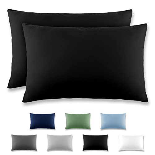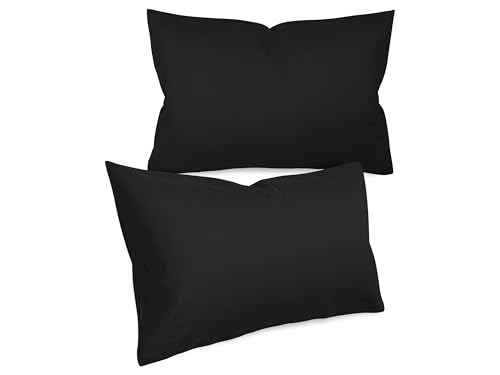 Npluseins Taie Oreiller 40x60 Unie - Lot de 2 Taies d'oreillers 40x60, 100% Coton Doux, Respirantes et Confortables, Design Discret 1154.1498, Noir