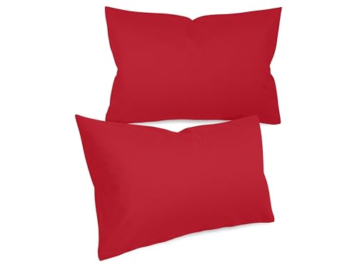 Npluseins Taie Oreiller 40x60 Unie - Lot de 2 Taies d'oreillers 40x60, 100% Coton Doux, Respirantes et Confortables, Design Discret 1154.1498, Rouge