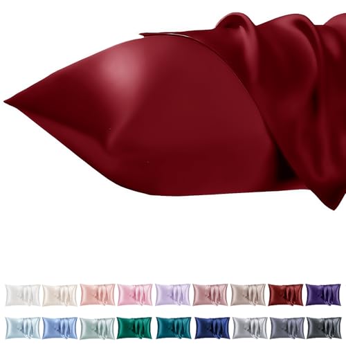 Vielit Taie Oreiller Satin 40x60 Lot de 2,Red Pillowcase pour Cheveux,Similaire Aux Taie d Oreiller en Soie,Taies d'oreillers 40x60 Housse de Coussin certifié Oeko-Tex
