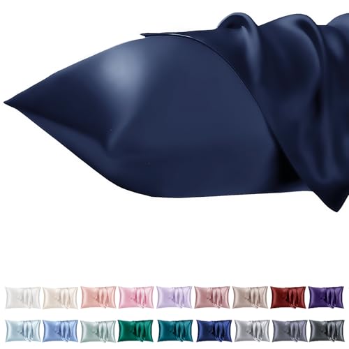 Vielit Taie Oreiller Satin 40x60 Lot de 2,Bleu Foncé Pillowcase pour Cheveux,Similaire Aux Taie d Oreiller en Soie,Taies d'oreillers 40x60 Housse de Coussin certifié Oeko-Tex