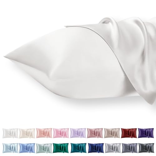 Vielit Taie Oreiller Satin 40x60 Lot de 2,Blanc Pillowcase pour Cheveux,Similaire Aux Taie d Oreiller en Soie,Taies d'oreillers 40x60 Housse de Coussin certifié Oeko-Tex