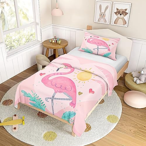 Morbuy Housse de Couette 220x240 200x200 140x200 90x190 et Taies d'oreillers 65x65/40x60 cm, Parure de Lit pour Adulte Enfant Ado, Flamant Imprimée (90x190cm,Flamant Rose)
