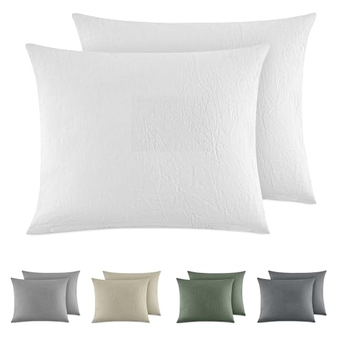 Dreamzie Taie Oreiller 40x60 Coton (Lot De 2) Taies d'Oreillers 100% Coton Lavé Aspect Lin, Housse de Coussin avec Fermeture Eclair, Blanc, Certifié Oeko Tex