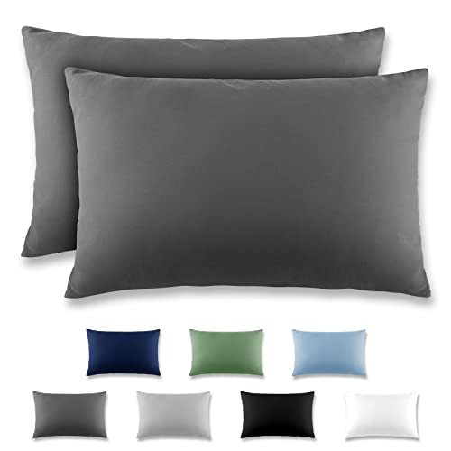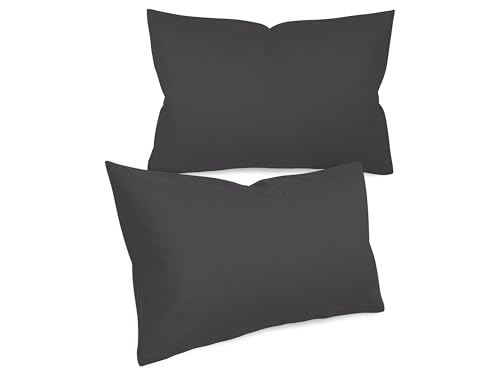 Npluseins Taie Oreiller 40x60 Unie - Lot de 2 Taies d'oreillers 40x60, 100% Coton Doux, Respirantes et Confortables, Design Discret 1154.1498, Anthracite