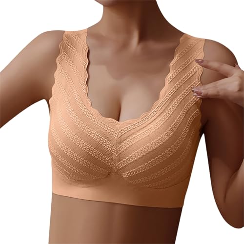 Soutiens-Gorge Femme,Brassiere Sport Femme,Soutien-gorge de nuit confortable sans coutures pour femme avec bordure en dentelle pour la détente et la nuit, grande taille, maintien sans fil (Beige, XXL)