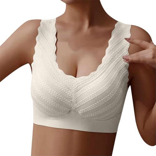 Soutien Gorge Remonte Poitrine,Soutien-Gorge de Nuit Confortable sans Coutures pour Femme avec Bordure en Dentelle pour la détente et la Nuit, Grande Taille, Maintien sans Fil (Beige, XL)