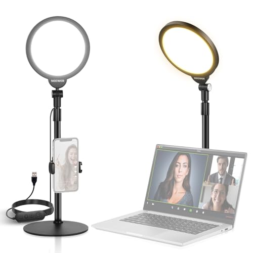 NEEWER BASICS 7" Anneau lumineux de bureau pour l'enregistrement vidéo, 10W éclairage principal plein écran dimmable avec Support et Support de Téléphone pour Ordinateur portable,Visioconférences,R06