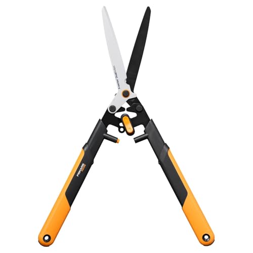 Fiskars X-Series DualAction Taille-Haie HSX96, Mode 2-en-1 pour des Coupes Rapides ou Puissantes, Lames en Acier Antiadhésif/Poignées FiberComp, Noir/Orange, 1080134