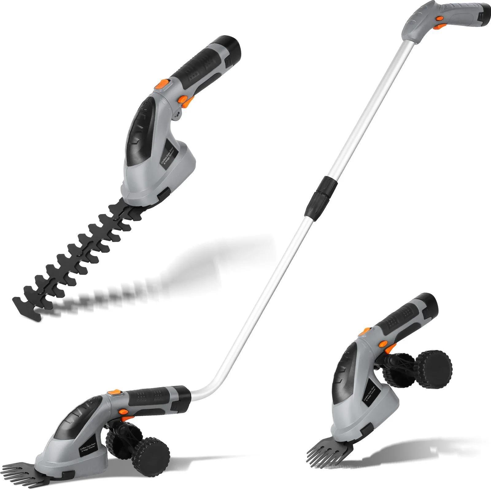 2en1 Cisaille à Gazon 7.2V, Coupe Bordure sans Fil, Tondeuse à Gazon, Taille Haies sans Fil, Manche Long Télescopique Détachable, 2 Types de Lames, Chargeur & Batterie, pour Couper Gazon/Buisson/Haie