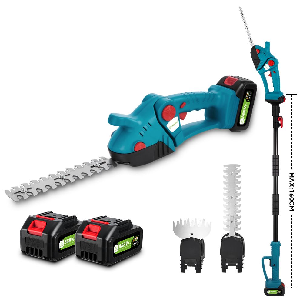 SEESII Brushless Telescopique Taille Haie: 4-en-1 Cisaille à Gazon 160mm & Taille Haies sans Fil 200mm, 2×2,0Ah Batteries, Taille-Haie à Batterie Idéal pour Haies, Rameaux Fins, Pelouses