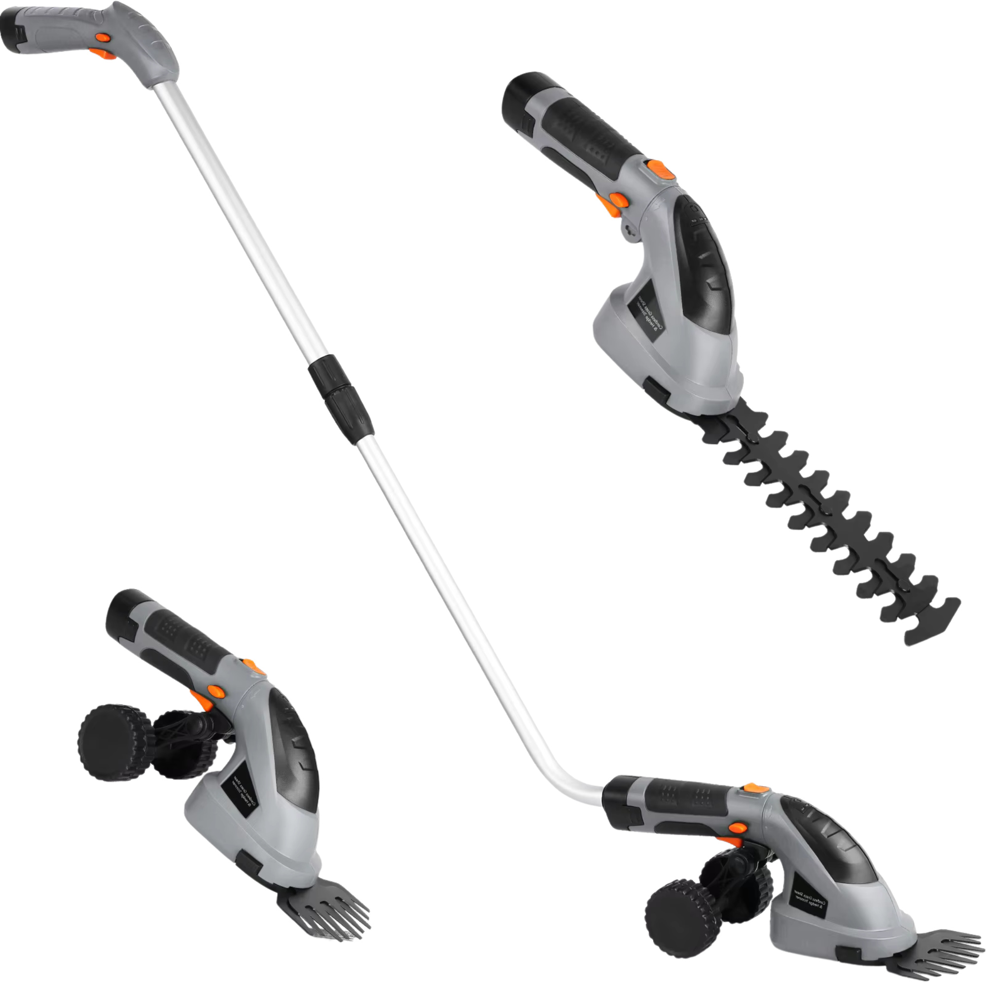 Taille-haies & cisaille à gazon - Outil sans fil 2 en 1 - Manche télescopique - 7,2 V - Sans fil - Batterie rechargeable - Gris clair