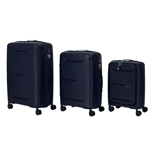 JET LAG - VO0065 - Set de 3 Valises de Voyage en Polypropylène avec Ouverture Frontale - Modèle Sydney - Taille Cabine et Grande - Couleur Navy - Parfaites pour Tous Vos Déplacements