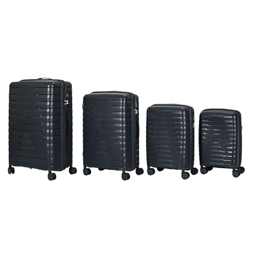 JET LAG - VO0062 - Set de 4 Valises Cabine en Plastique Polypropylène PP avec Roues Amovibles - Légères et Spacieuses - Idéales pour Voyager Facilement - Couleur Gris - Taille Standard