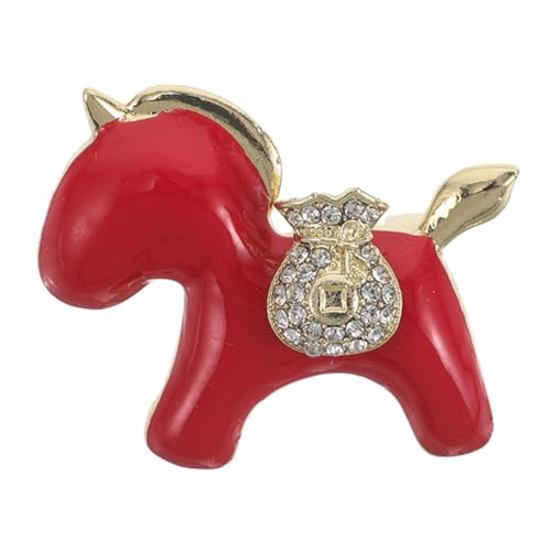 Holibanna Broche Cheval pour femme : Broche zodiaque chinois - strass style vintage - Bijou année du Cheval pour décorer une robe ou un tailleur, rouge